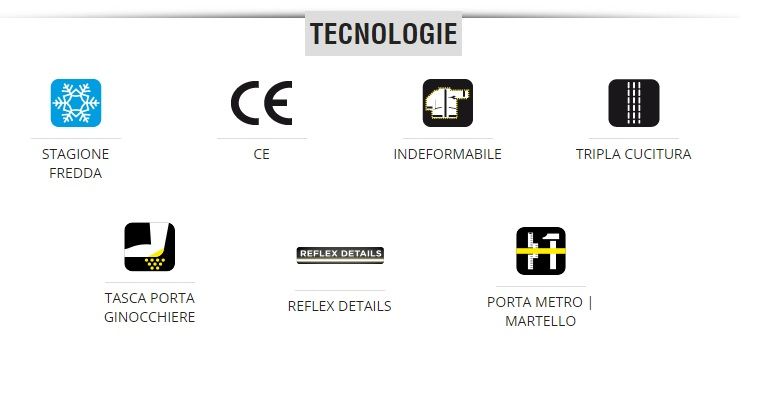Pantalone invernale con ginocchiere, tasca laterale, dettagli rinfrangenti, tasca portametro, portamartello e dettagli in contrasto in materiale anti-abrasione, elastico in vita, tripla cucitura.