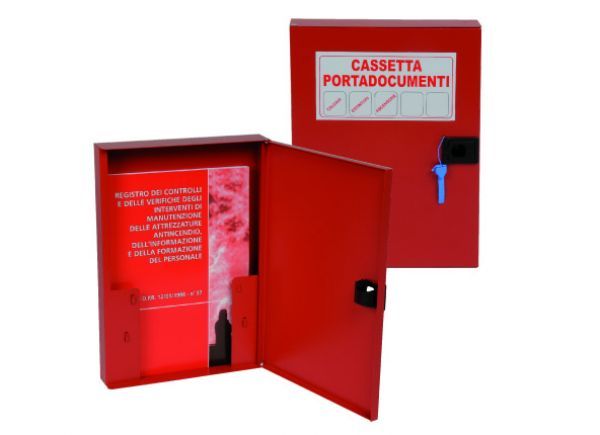 La cassetta è realizzata con lamiera lucida da 10/10, verniciata a base di resine in poliestere di colore rosso RAL 3000 a norma ISO 9227 con elevata resistenza agli agenti atmosferici.
