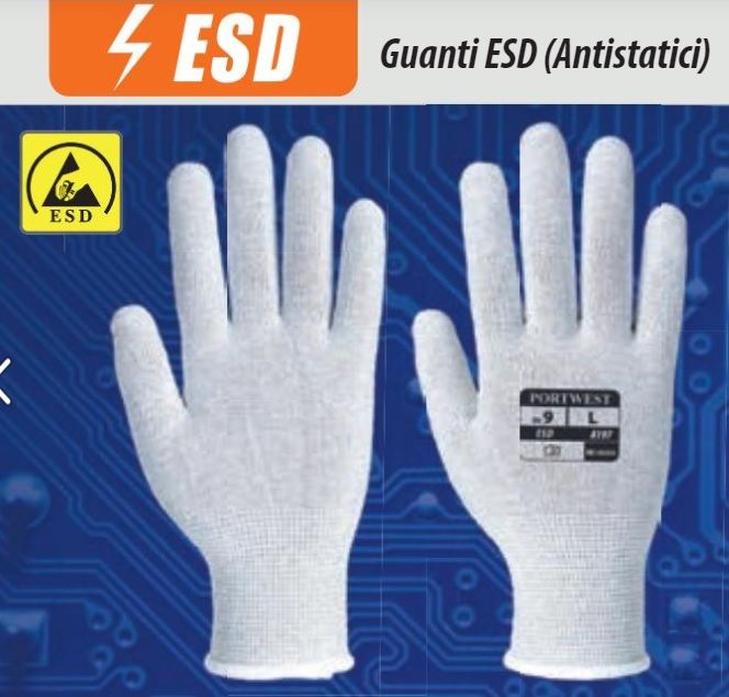 I guanti ESD disperdono l'elettricità statica. La loro superficie è testata
