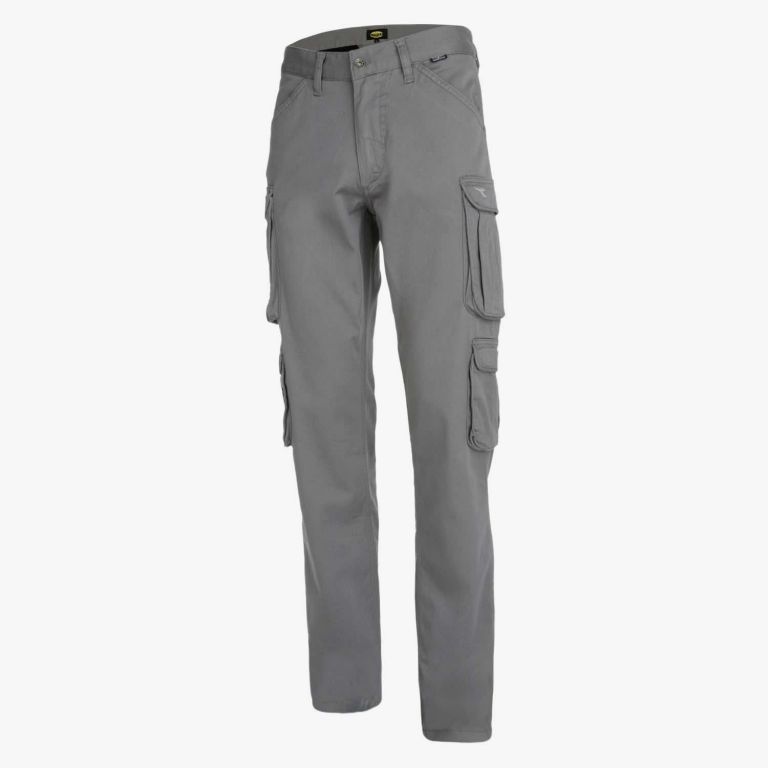 DescrizionePantalone cargo tasconato elasticizzato, lavaggio ad enzimi, 4 tasche laterali portaoggetti, tripla cucitura.Ideale perIMPIANTISTICACaratteristiche Materiali 98% Cotone 2% Elastanegabardina stretch 250 gr/m²