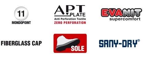 SOLETTA: EVANIT, con speciale mescola di EVA e nitrile, ad elevata portanza e spessore variabile (12mm - 8mm - 3,8mm). Termoformata, anatomica, forata e rivestita in tessuto altamente traspirante. Antistatica grazie ad uno specifico trattamento superficiale e a cuciture realizzate con filati conduttivi