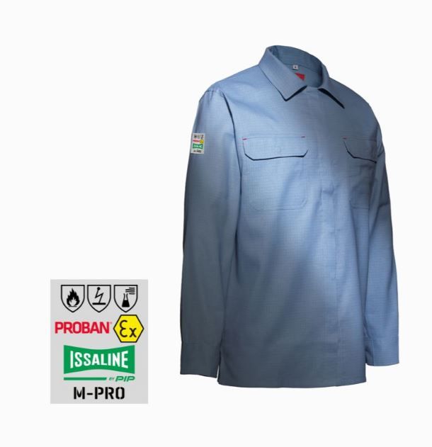 La camicia M-Pro Multiprotezione Issa Line è composta da due pezzi anteriori e una parte posteriore.