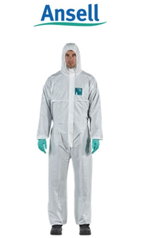 La tuta Ansell AlphaTec 1800 Standard protegge dagli spruzzi di liquidi a basso rischio e di polveri sottili.
