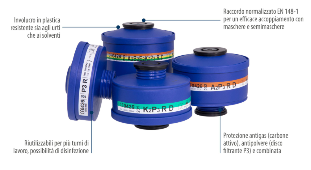 Filtro conforme al Regolamento 425/2016 (DPI). Il filtro è certificato secondo le norme: