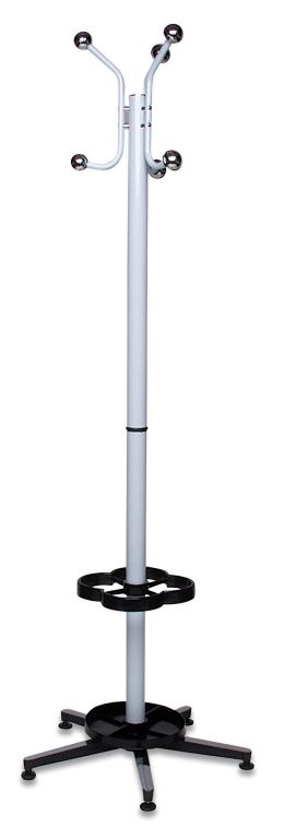 Attaccapanni a colonna verniciato bianco con portaombrelli. Base a 5 razze.