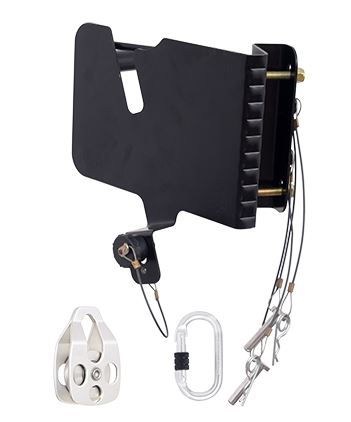 Puleggia : La puleggia per il ridirezionamento della corda si posiziona sull'anello di ancoraggio del treppiede.