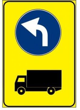 Segnale composito che presegnala, in avvicinamento ad un cantiere stradale, l'esistenza di un itinerario obbligatorio per i veicoli che trasportano cose aventi massa complessiva superiore a 3,5 t.