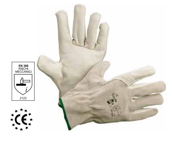 Guanto con palmo e indice in pelle bovina spessore 1 mm e dorso in crosta spessore 1.2 mm